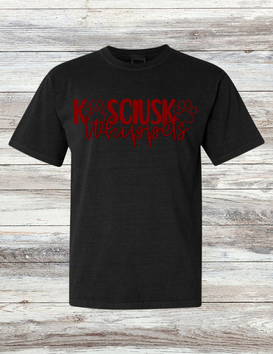 Paw Print Kosciusko Whippets T-shirt - Black Ink