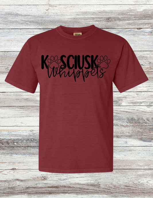 Paw Print Kosciusko Whippets T-shirt - Maroon Ink