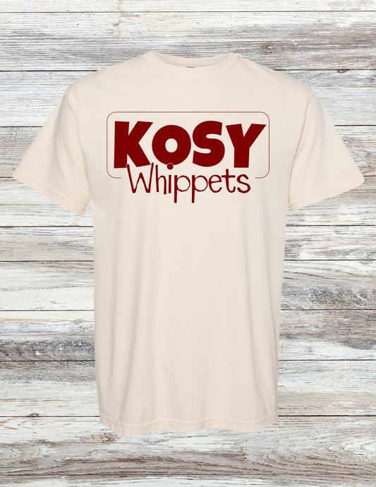 Framed Kosy Whippets T-Shirt - Maroon Ink
